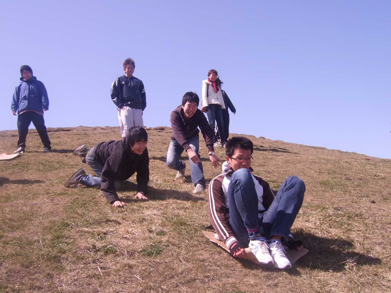 下りは恒例のダンボールで